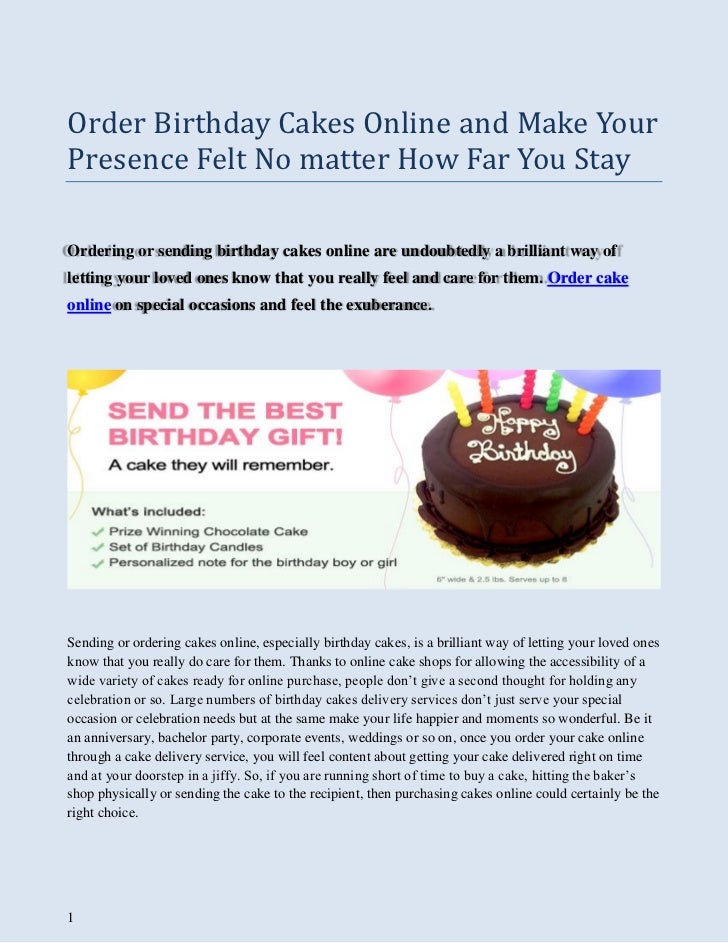 Order Birthday Cakes Online And Make Your Presence Felt No Matter How