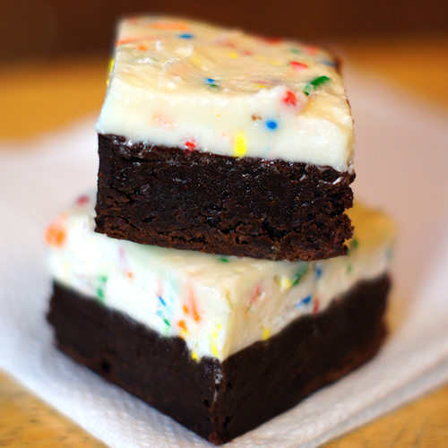 Fudge Brownies With Cake Batter Frosting Aka Coldstone Birthday Cake