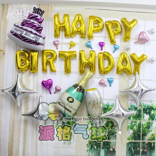 Happy Birthday Cake Foil Balloons Big Cake Champagne Cup Beer Bottle