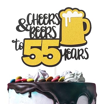 Cheers Beers To 55 Years Gold Glitter Cake Topper Happy Birthday