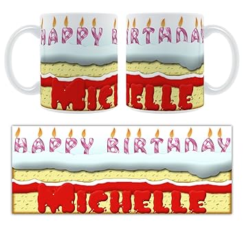 Happy Birthday Michelle Birthday Cake Personalised Ceramic Mug