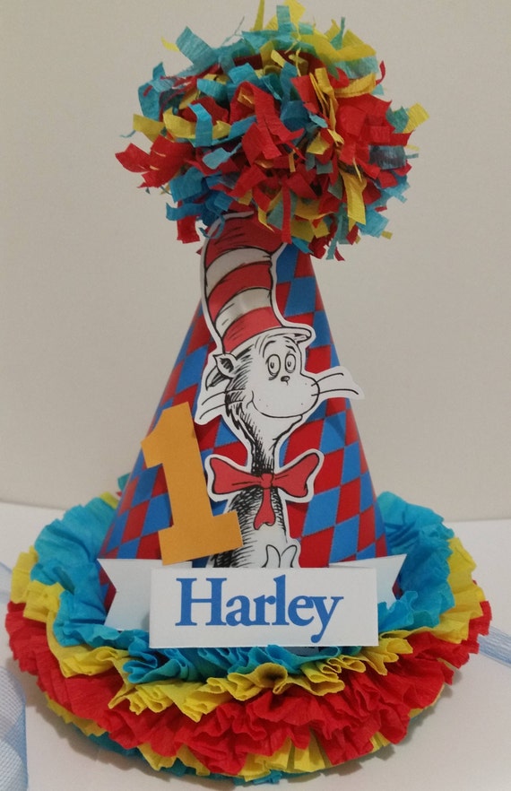 Dr Suess Cat In The Hat Party Hat 1st First Birthday Custom Etsy