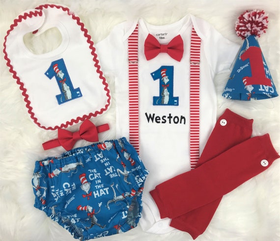 First Birthday Cake Smash Outfit Dr Seuss The Cat In The Hat Etsy
