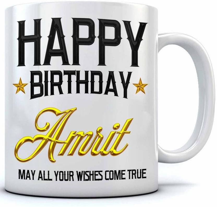 Ramposh Happy Birthday Amrit Name Printed Ceramic Coffee 350 Ml