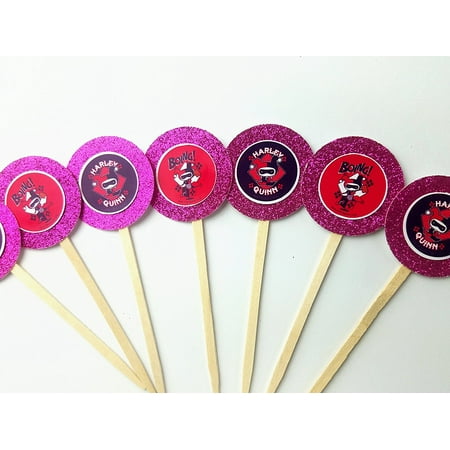 8 Pink Harley Quinn Cupcake Picks Birthday Party Dessert Table Food