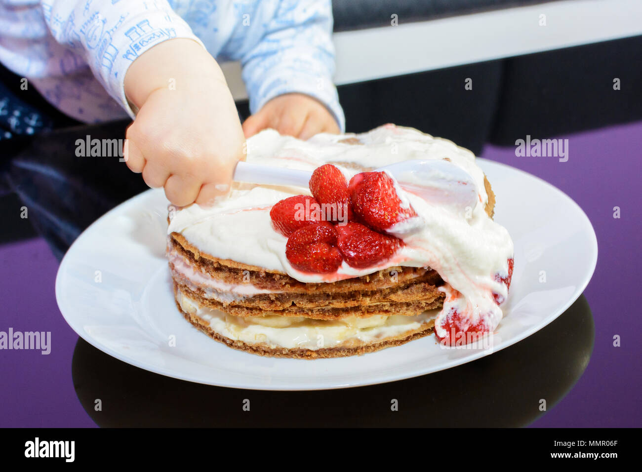 Little Boy Thrilled With His Ranch Cake Eat The Art