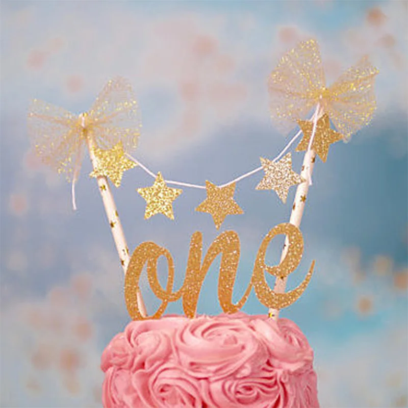 Hot Sale Baby 1st Birthday Cake Topper Gold One Letter Glitter Stars