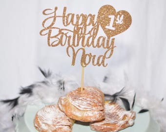 Personalised 1st Birthday Glitter Cake Topper Custom Any Name Age