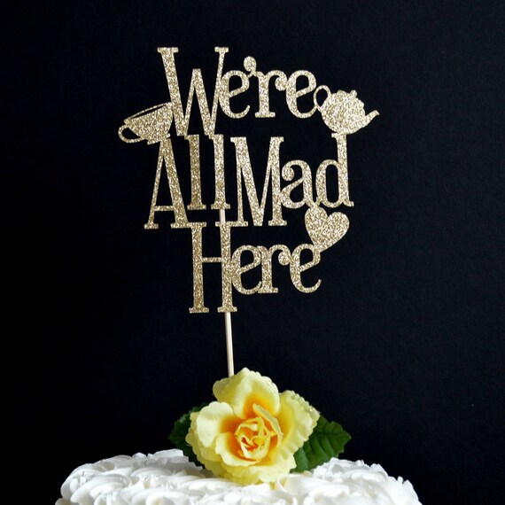 We Re All Mad Here Glitter Cake Topper Alice In Etsy
