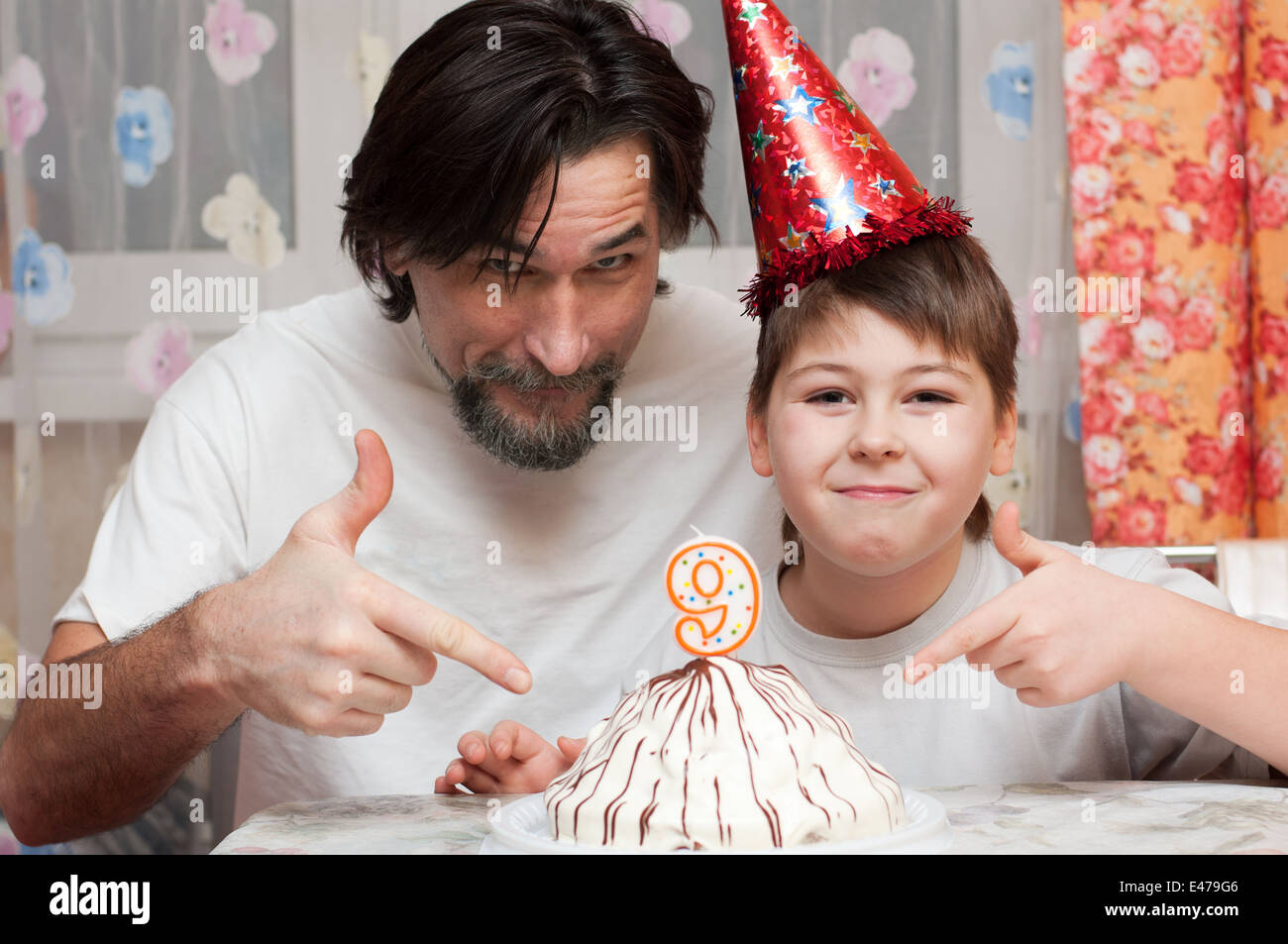 Father And Son Cutting Birthday Cake Stock Photo Dissolve