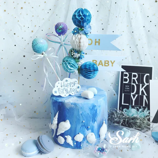 Blue Birthday Cake For Baby First Kid Birthday Decorations With