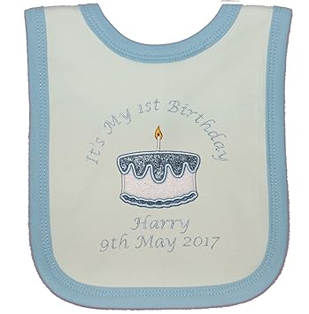 Baby Boy S Personalised 1st Birthday Cake Bib Cake Smash White