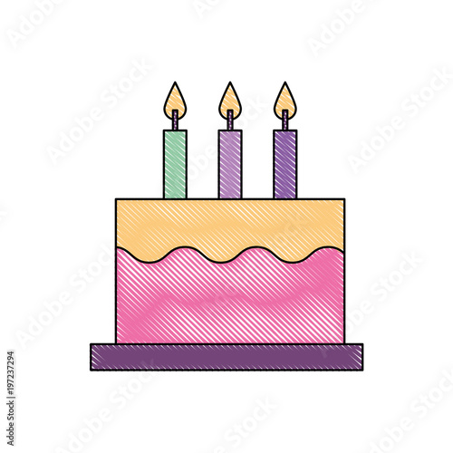 Delicious Birthday Cake With Three Candles Vector Illustration
