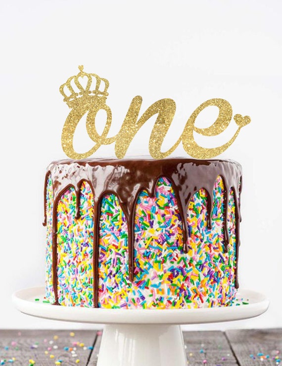 First Birthday Cake Topper One Year Old Cake Topper Gold Etsy