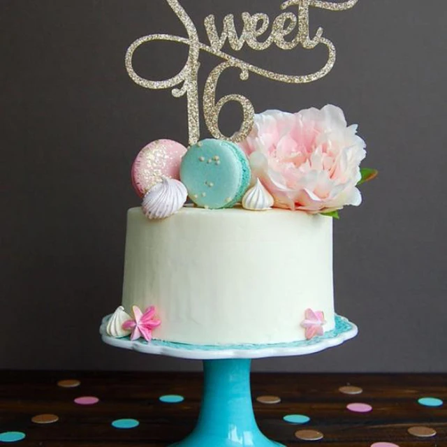 1 Pc Hot Sale Glitter Gold Sweet 16 Birthday Cake Topper Cake
