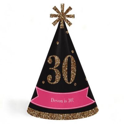 Chic 30th Birthday Pink Black And Gold Cone Happy Birthday