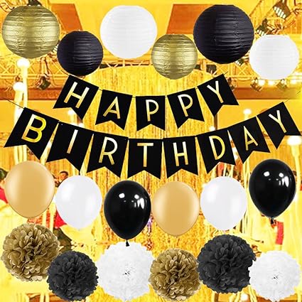 Amazon Com Kubert Black And Gold Party Decorations With Happy