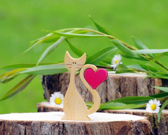 Cat Figurine With Heart Cat Lover Owner Crazy Cat Lady Long Etsy
