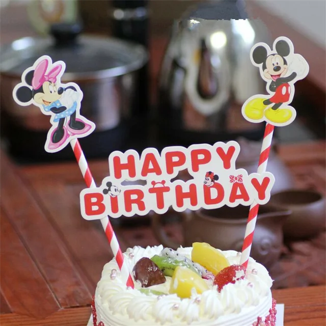 1set Happy Birthday Mickey Minnie Mouse Cupcake Cake Topper Cake
