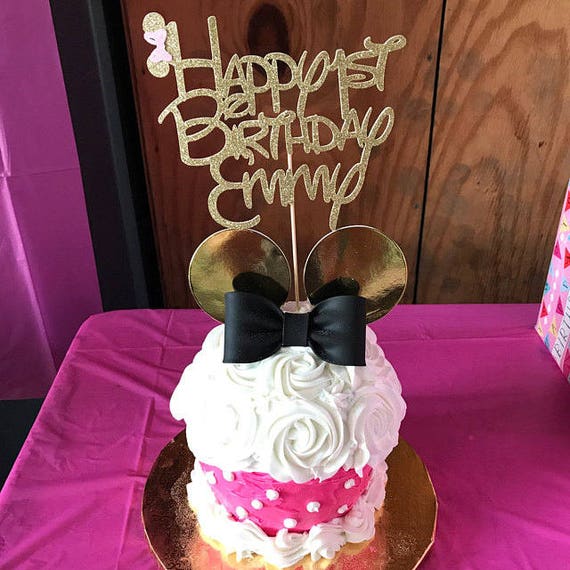 Minnie Mouse Birthday Cake Topper Gold And Pink Minnie Mouse Any