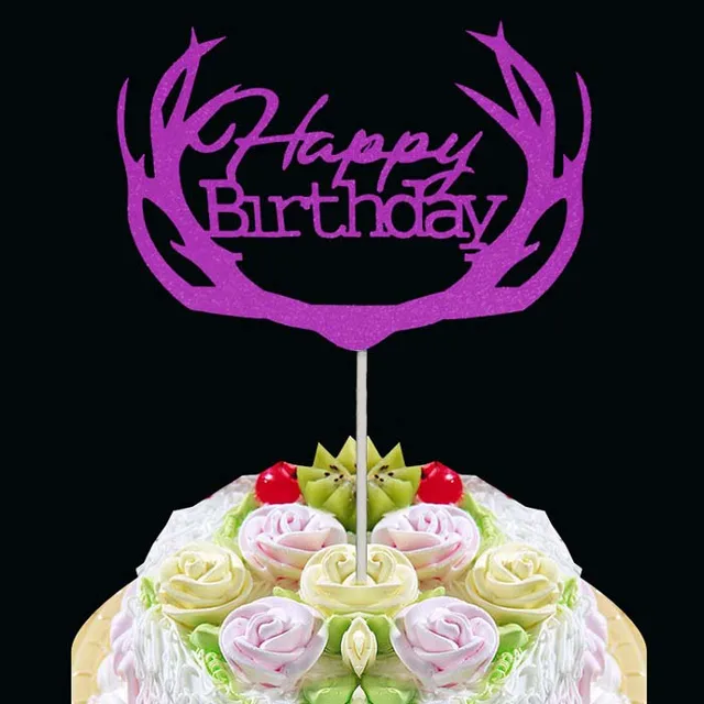 Cake Toppers Gliter Horn Happy Birthday Paper Cards Banner For Fruit