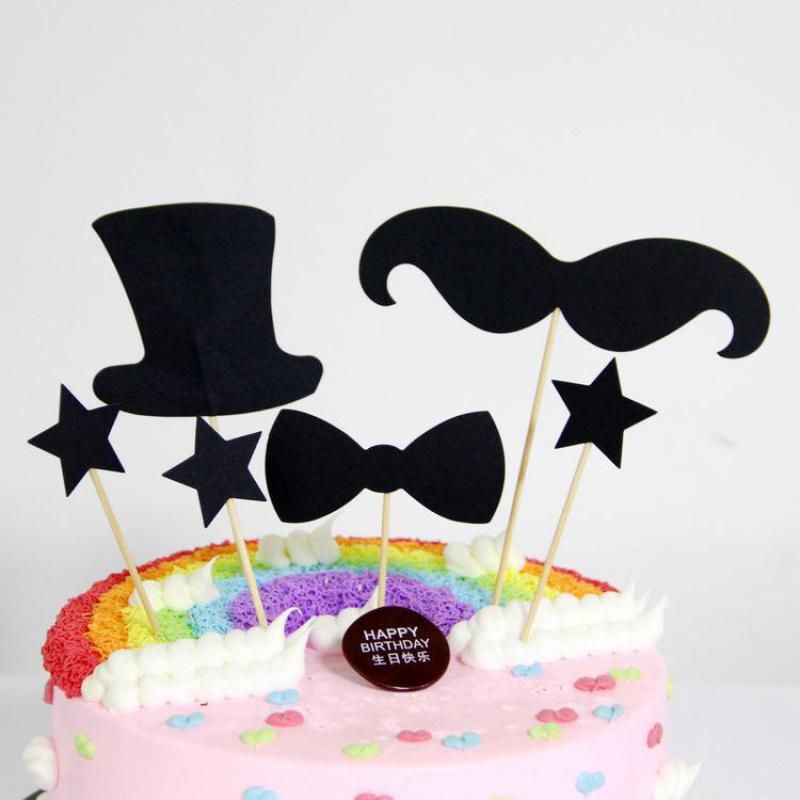 2019 Moustache Cake Topper Paper Cupcake Kids Birthday Parties