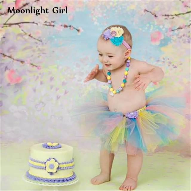 Baby Girls Pastel Rainbow Tutu Skirts With Headband Flowers 1st