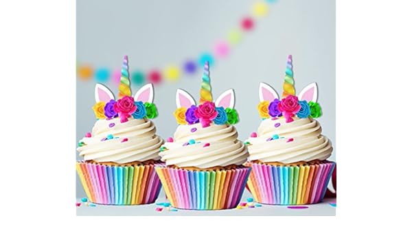 Amazon Com Unicorn Rainbow Horn Edible Cupcake Cake Toppers X15