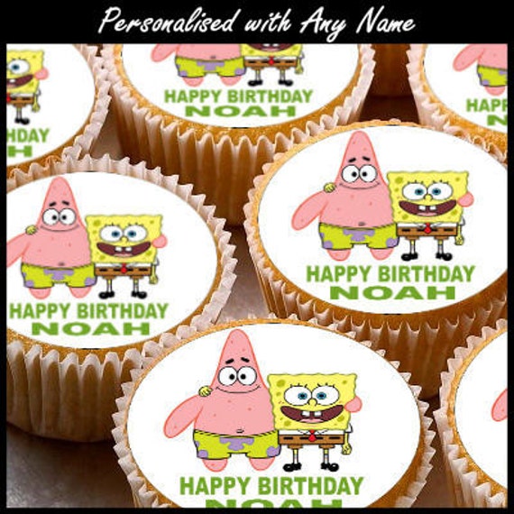 24 X Personalised Spongebob Cup Cake Toppers With Any Name Etsy