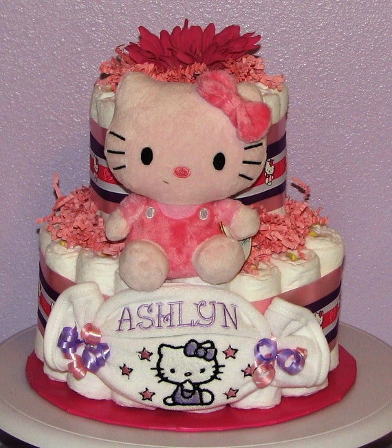 Hello Kitty Diaper Cake Baby Girl Diaper Cake Embroidered Etsy