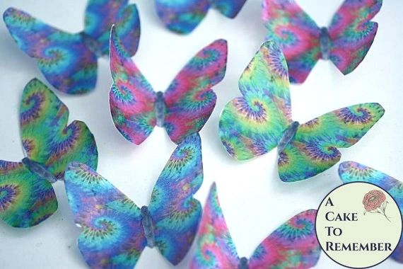 12 Tie Dye Edible Butterfly Cupcake Topper Birthday Cake Decorations