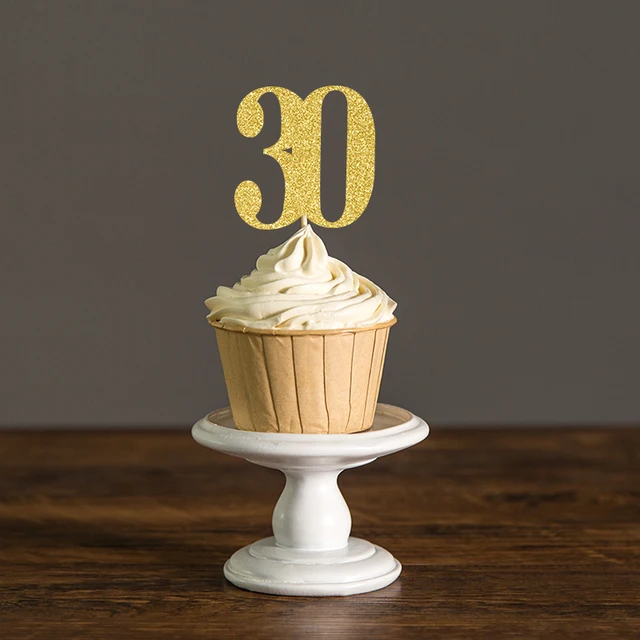 Gold Or Black Glitter Number 30 Cupcake Toppers Picks 30th Thirty