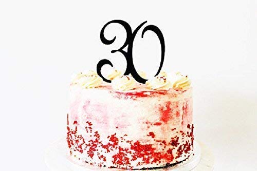 Thirty Cake Topper 30th Black Glitter Birthday Script Large Etsy