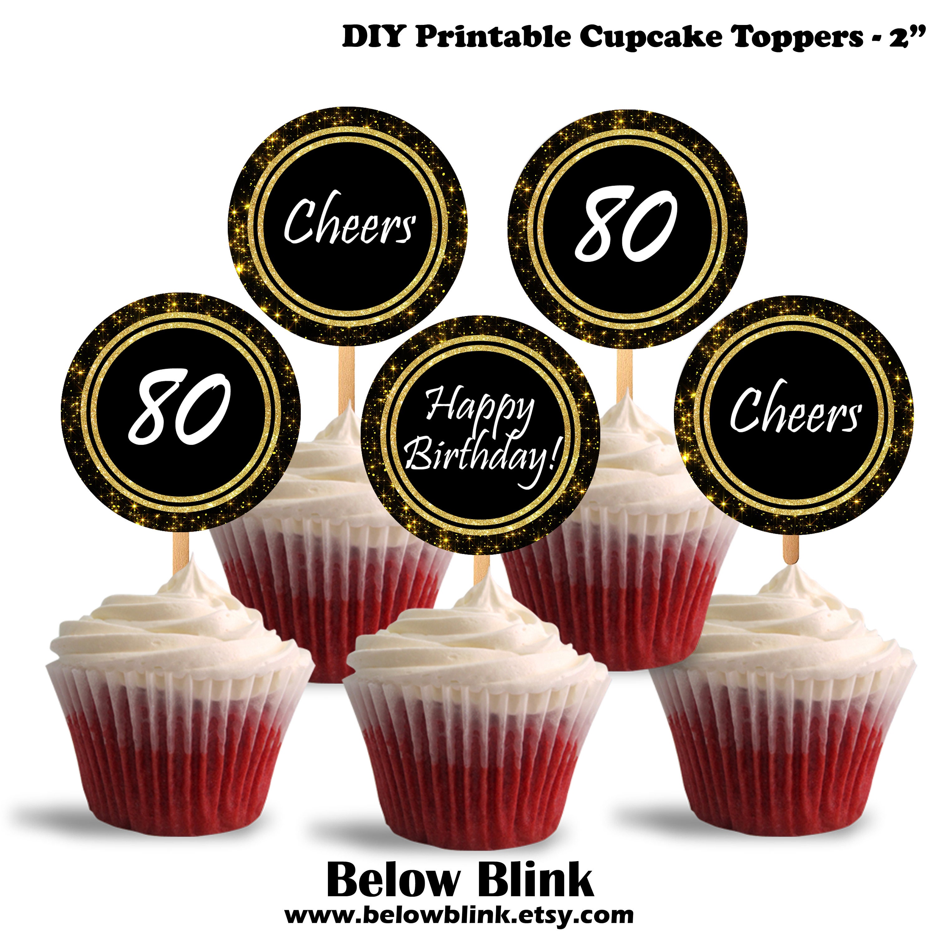 80th Birthday Cupcake Toppers Cheers To Eighty Printable Etsy