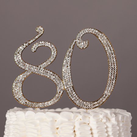 80 Gold Cake Topper For 80th Birthday Party Crystal Rhinestone