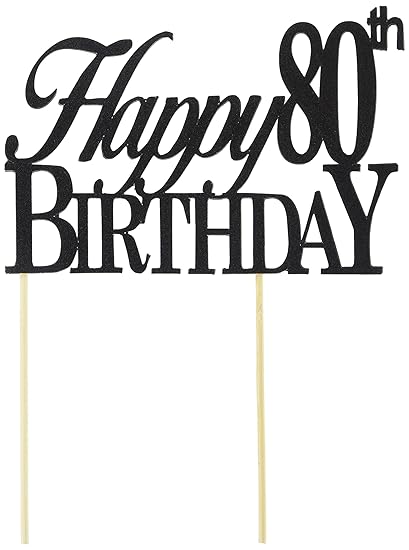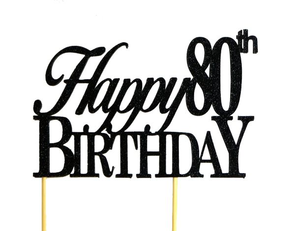 Black Happy 80th Birthday Cake Topper 80th Birthday Party Decoration