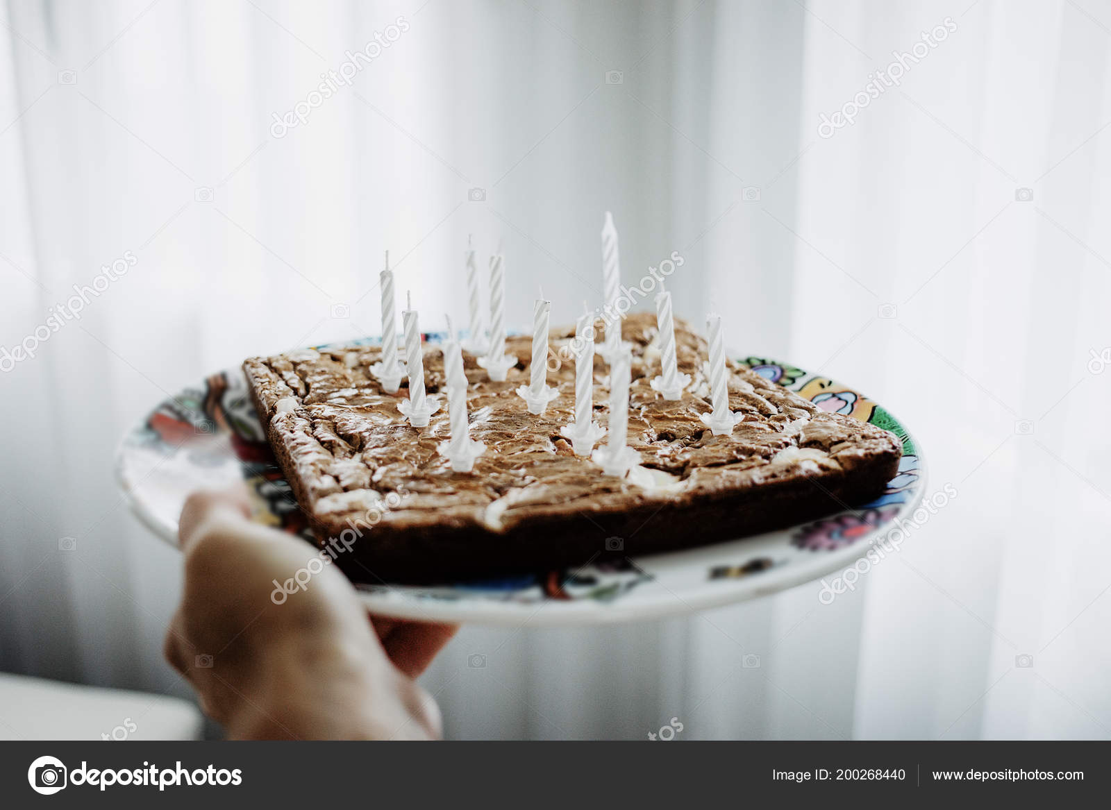 Chocolate Birthday Cake Eleven White Candles Point View Shot Body