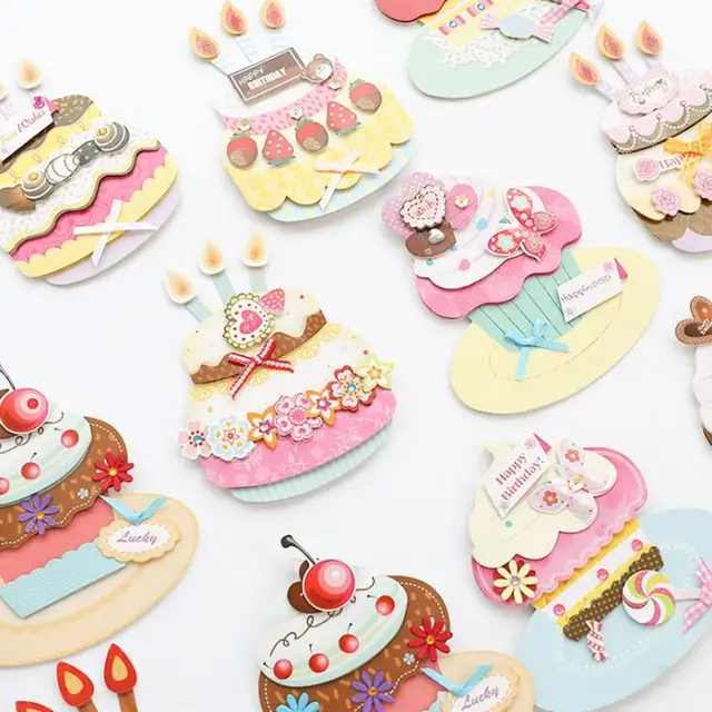 16 Pieces Lot 3d Stereo Cake Handmade Birthday Greeting Card With