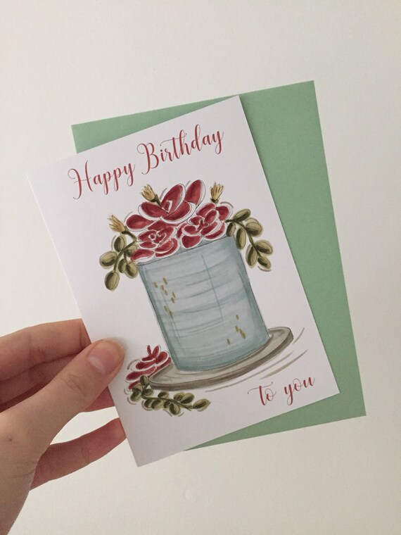 Happy Birthday To You Card Flower Cake Card Gift For Her Etsy