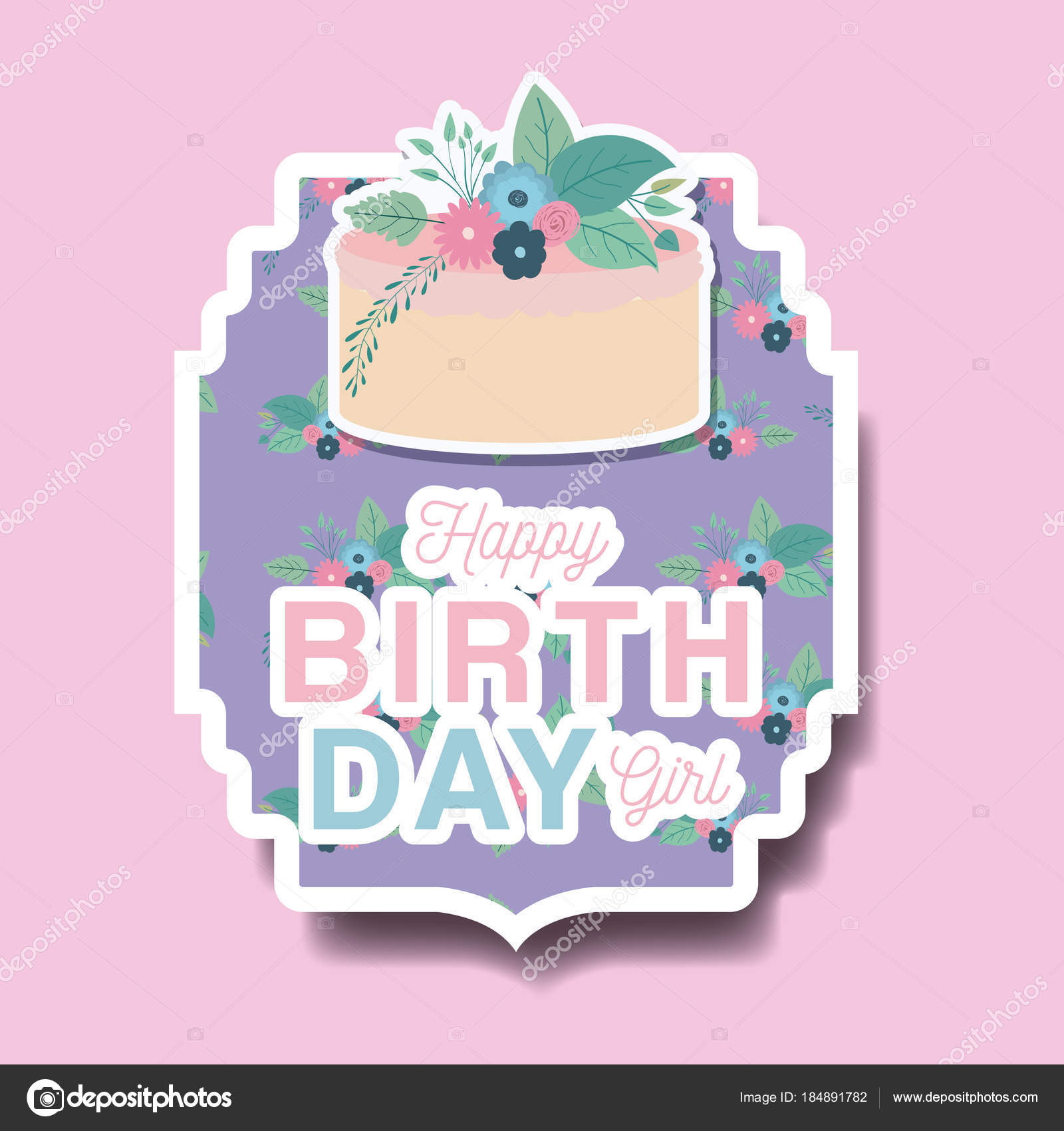 Happy Birthday Card With Floral And Cake Vector Illustration Design