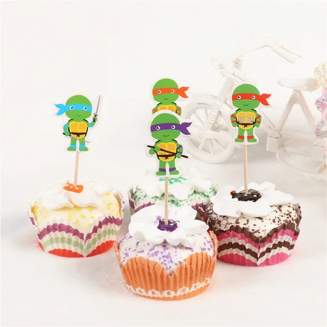 24pcs Cartoon Mutant Ninja Turtles Leonardo Cupcake Topper Tortoise