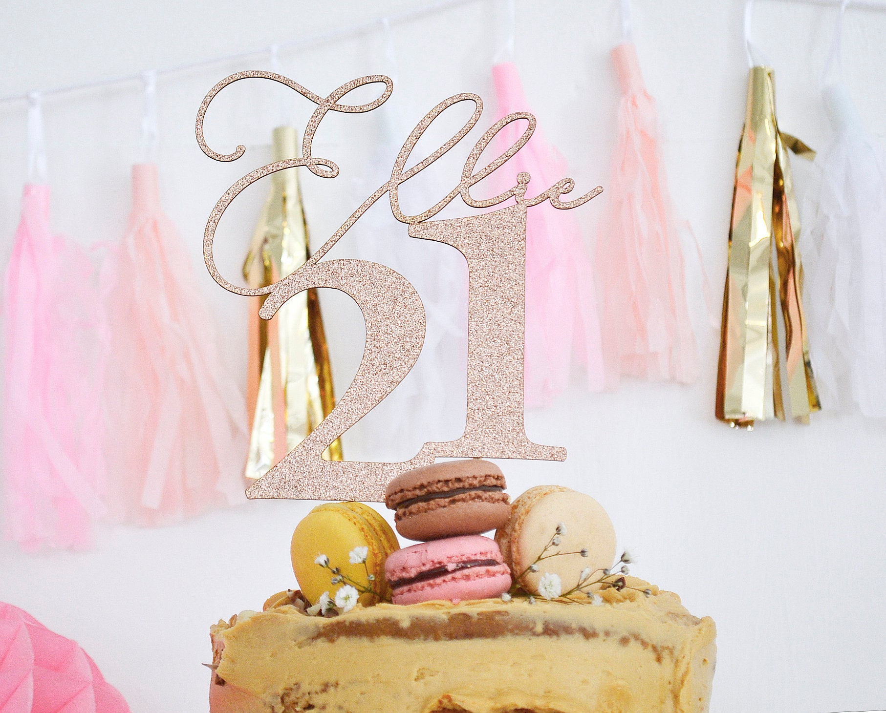 Personalised Rose Gold Cake Topper Twenty One 21 Birthday Cake