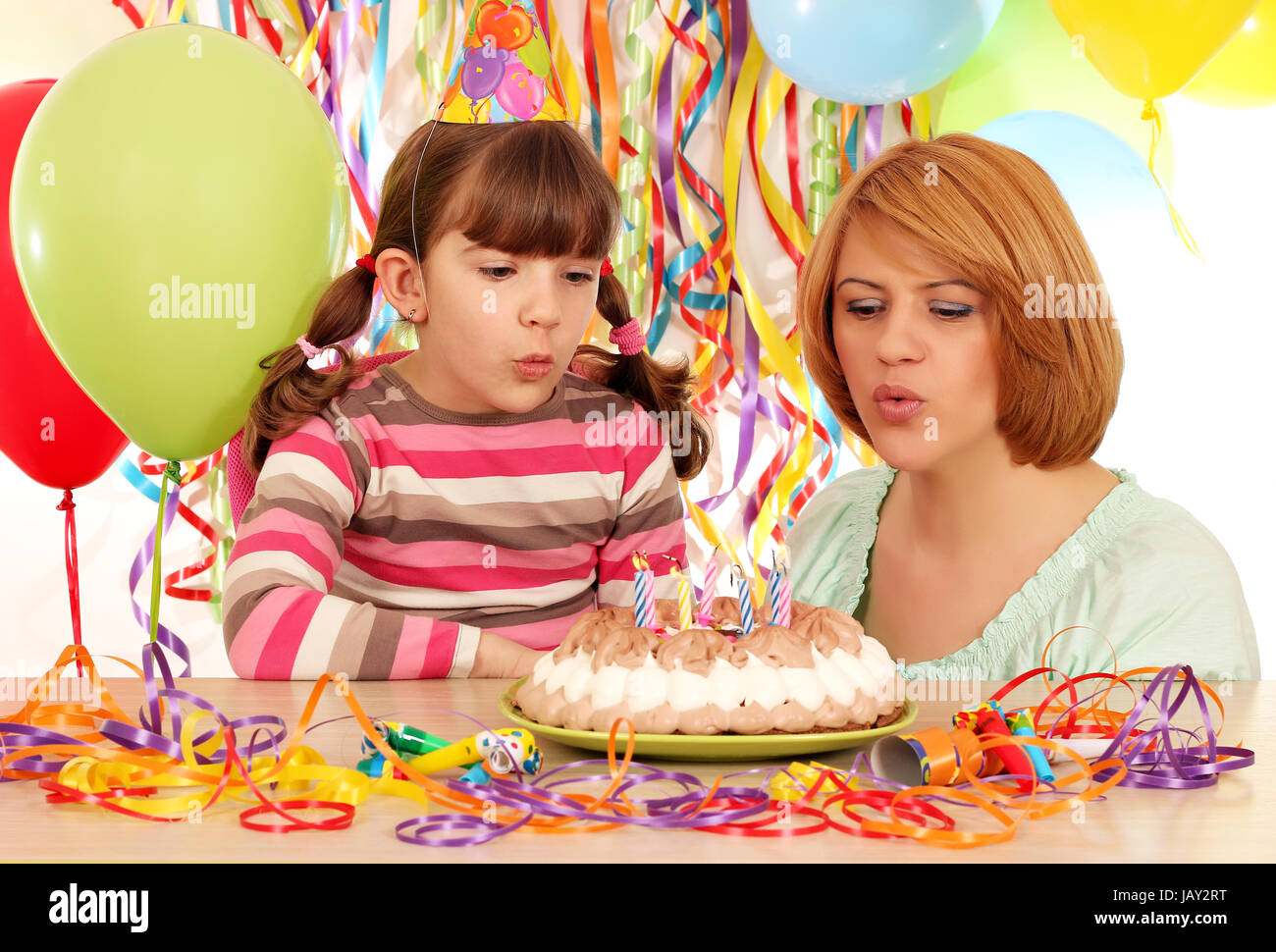 Mom And Daughter Blowing Birthday Candles Stock Photo 144424444 Alamy