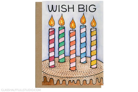 Wish Big Birthday Card Birthday Cake Card Birthday Wish Etsy