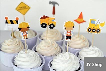 Amazon Com 24pcs Construction Cake Toppers Dump Trucks Forkcrane