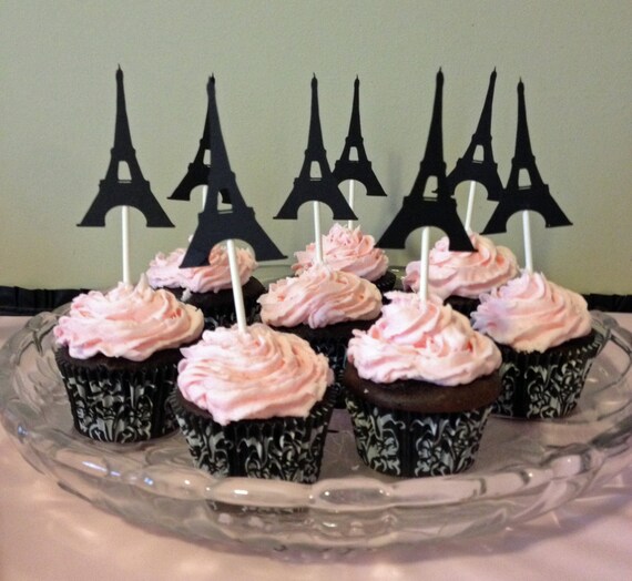 24 Eiffel Tower Cupcake Toppers Paris Birthday Party Paris Cupcake