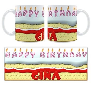 Happy Birthday Gina Birthday Cake Personalised Ceramic Mug Amazon