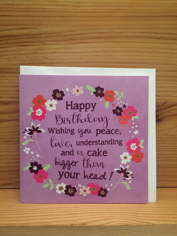 Happy Birthday Card Birthday Cake Funny Quote Purple Etsy
