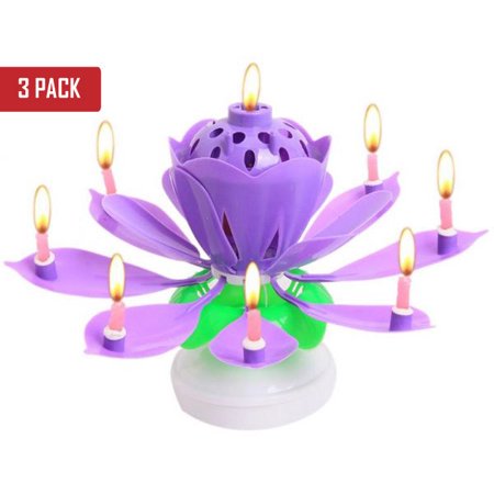 3 Pack Birthday Cake Flower Candles With Happy Birthday Music