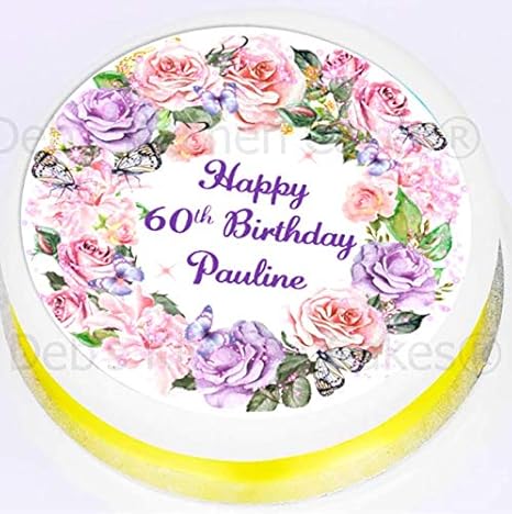 Happy Birthday Purple Flower 7 5 Inch Precut Edible Cake Topper